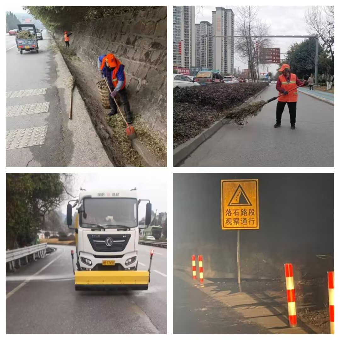 春節(jié)期間,路橋公司派出160余名一線養(yǎng)護(hù)工人、20余名機(jī)械作業(yè)人員,對(duì)管養(yǎng)354公里道路進(jìn)行日常清掃保潔工作;安排專人對(duì)各線路橋梁、涵洞、隧道、路基、路面、高邊坡和交安設(shè)施等部位進(jìn)行安全隱患排查,及時(shí)處置公路安全隱患;設(shè)置6名觀察哨,對(duì)51處地災(zāi)易發(fā)點(diǎn)進(jìn)行值守;加密夜間巡查頻次,筑牢交通安全防線,提升道路安全水平,為廣大人民群眾的平安出行保駕護(hù)航。