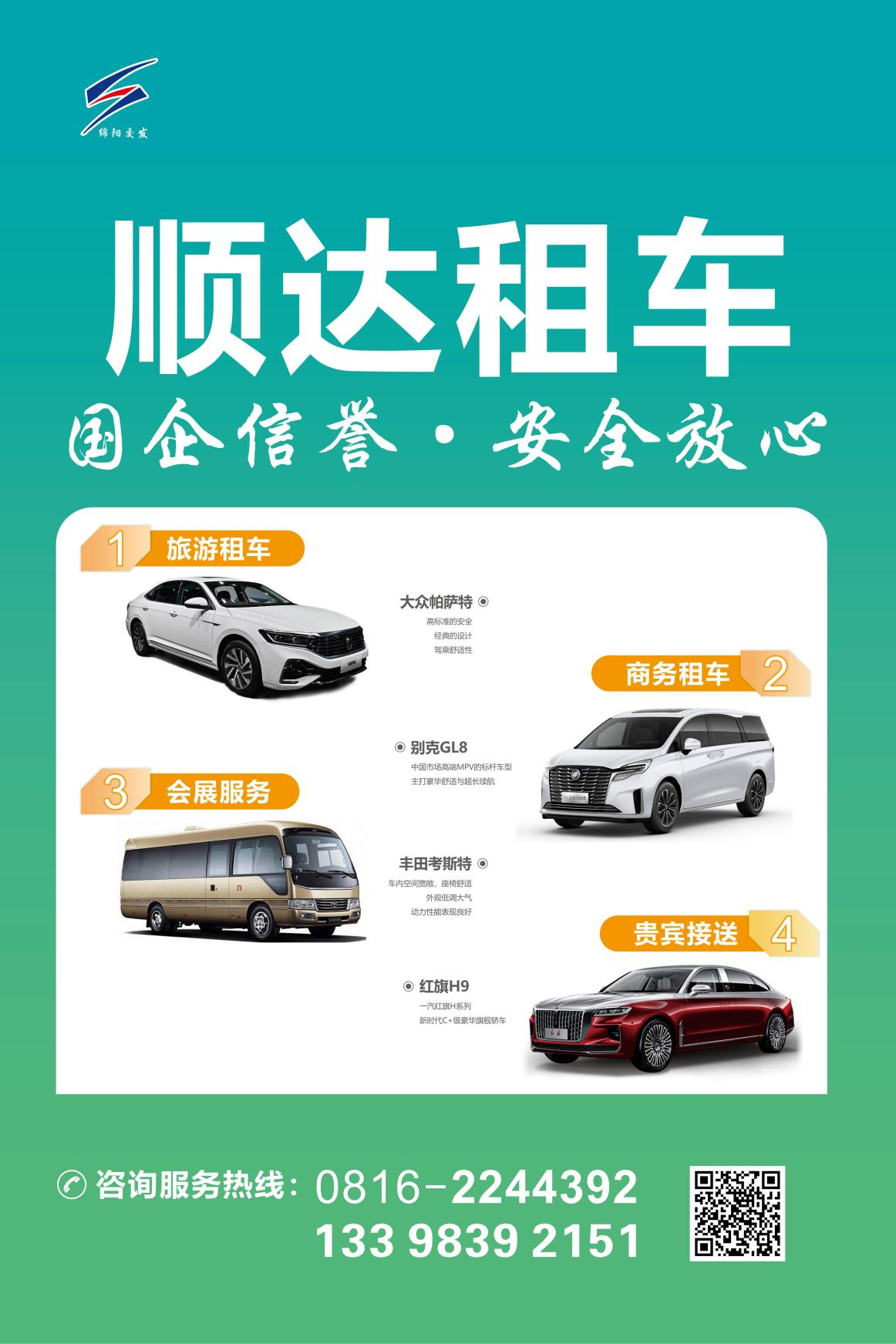 專注本土更專業(yè)。順達(dá)租車是綿陽全資國企,依托本土資源優(yōu)勢可提供“全車型矩陣+全城網(wǎng)絡(luò)”服務(wù),車型覆蓋5座至53座,服務(wù)場景囊括機(jī)場(高鐵)接送、商務(wù)接待、會議通勤、活動會展、企業(yè)班車等。配備持有營運(yùn)資質(zhì)的專業(yè)司機(jī)團(tuán)隊,駕駛經(jīng)驗豐富,職業(yè)素養(yǎng)高,熟悉綿陽交通、線路、景點、美食等多方面信息,為旅客提供中國唯一科技城正確打開方式。